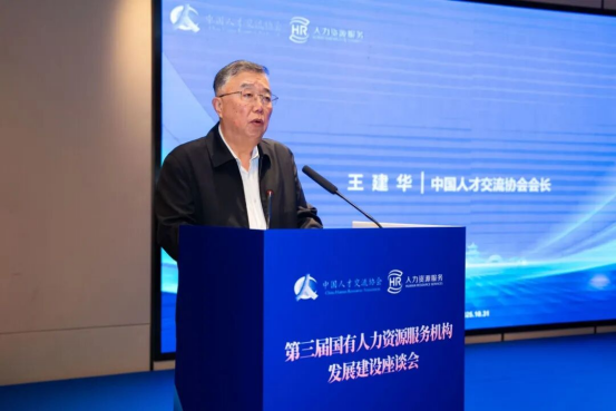 随后,由中国人才交流协会会长王建华讲话,王会长从努力做人才数据的运维者、做行业转型升级的排头兵、做行业生态环境的守望者三方面,为国有人力资源机构发展提出了意见建议,期望能对国有人力资源服务机构的发展有帮助和助力。