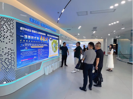 考察团到达中试谷·智能无人系统测试基地参观,由市中试谷专班人员详细介绍了研究院在无人机物流、低空监控系统等领域的技术突破以及校地合作推动科技成果转化的典型案例。